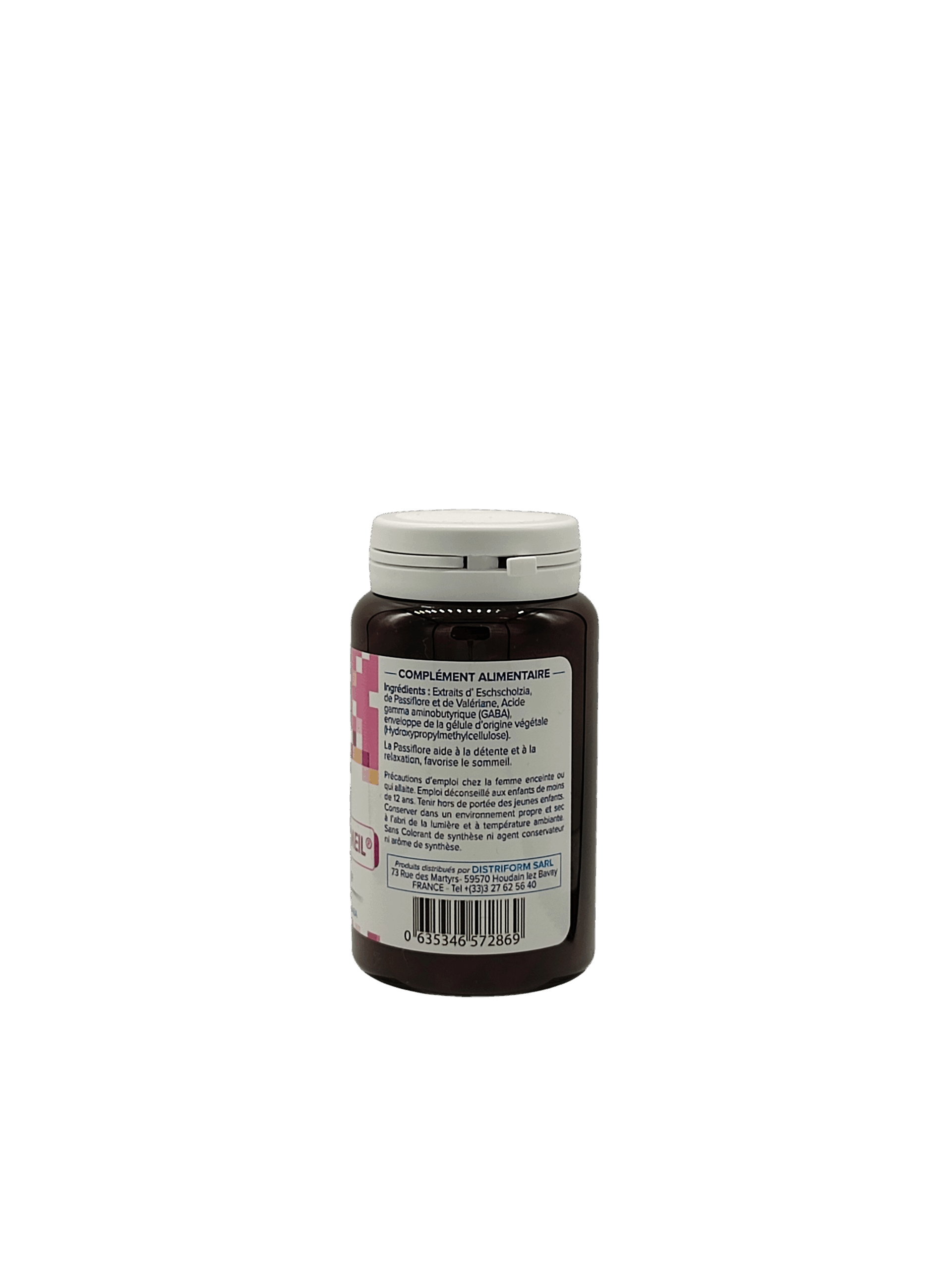 Association équilibrée d’Escholtzia Californica, Valériane, Passiflore et GABA (Acide Gamma Amino Butyrique) pour contribuer à un sommeil normal et réparateur.Précautions d’emploi: Déconseillé chez les enfants de moins de 12 ans. Précautions d’emploi chez les femmes enceintes ou qui allaitent.PORTION JOURNALIÈRE RECOMMANDÉE: 2 à 3 gélules par jour.